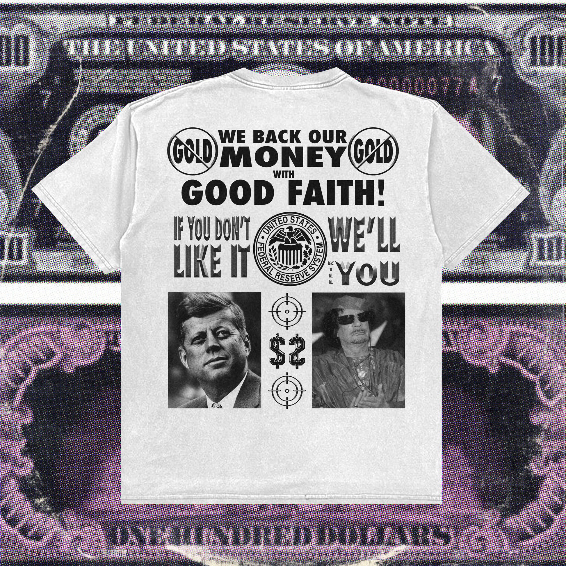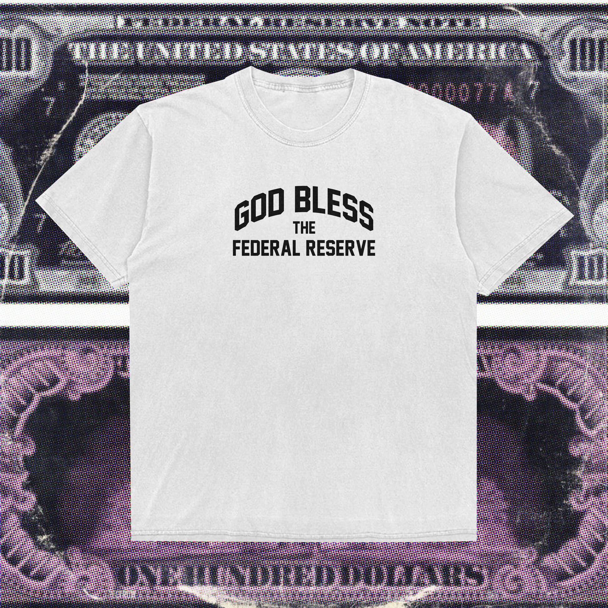 GOD BLESS THE FEDERAL RESERVE TEE BY BRICKYARDUSA PRINTED ON A SHAKA SUPER MAX HEAVY BLANK.